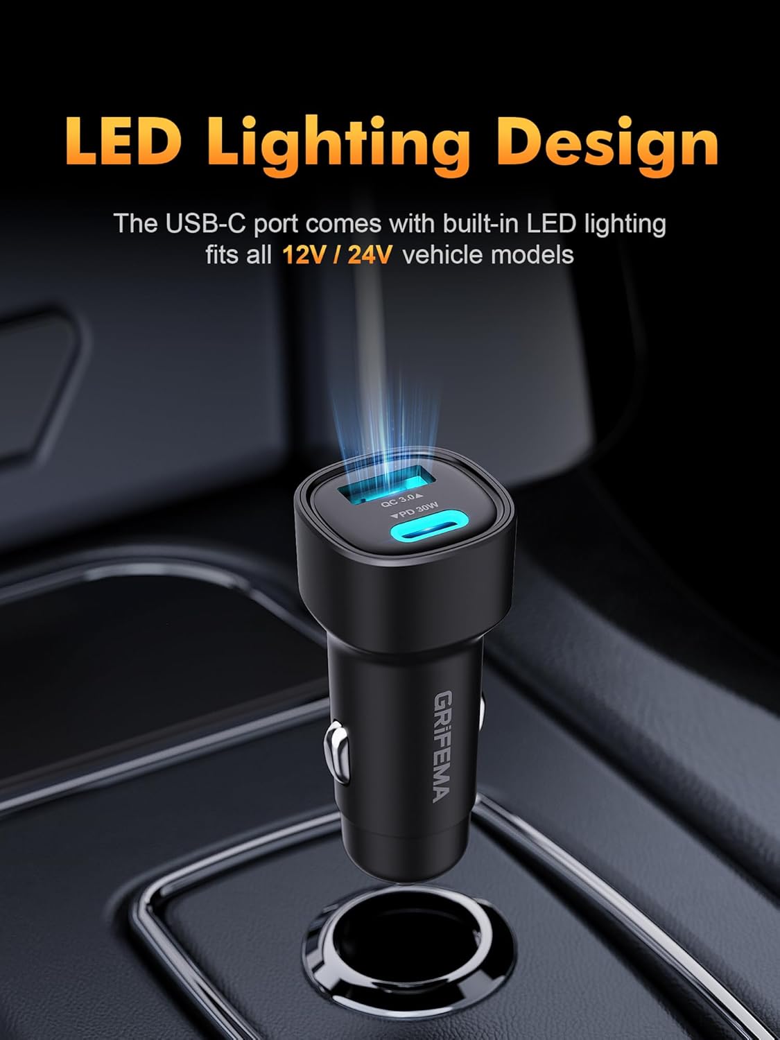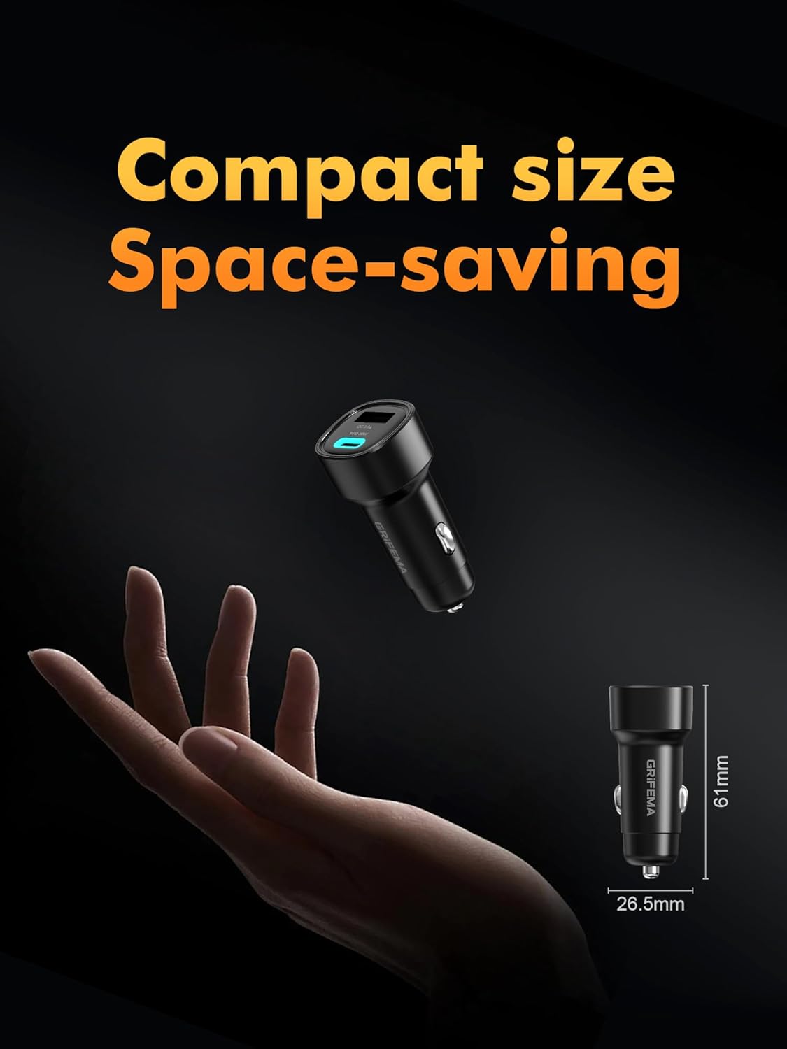 In today’s fast-paced world, staying connected while on the road has become increasingly vital. Enter the GRIFEMA Car Charger 48W, a dual-port cigarette lighter USB charger designed to cater to modern charging needs. Boasting a combination of 30W Power Delivery (PD) via USB-C and 18W Quick Charge 3.0 (QC 3.0) through USB-A, this device aims to deliver efficient charging for a range of devices, including popular models from Apple and Samsung.
