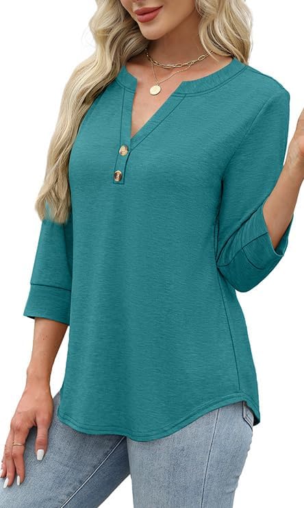 The design elements of the OFEEFAN Henley shirt offer both aesthetic appeal and practicality. The 3/4 sleeves are an excellent feature, striking a balance between casual and polished, making it suitable for both business casual and everyday wear. The basic V-neck adds a classic touch, while the curved hem design enhances its flattering fit.
